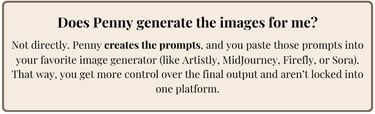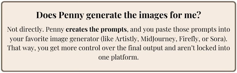 3. Copy + Paste Prompts into your favorite AI image generator (like MidJourney, Leonardo, or Artistly).